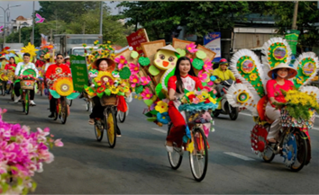 Hoạt động diễu hành xe đạp hoa dọc tuyến đường Phường Bình Đông.