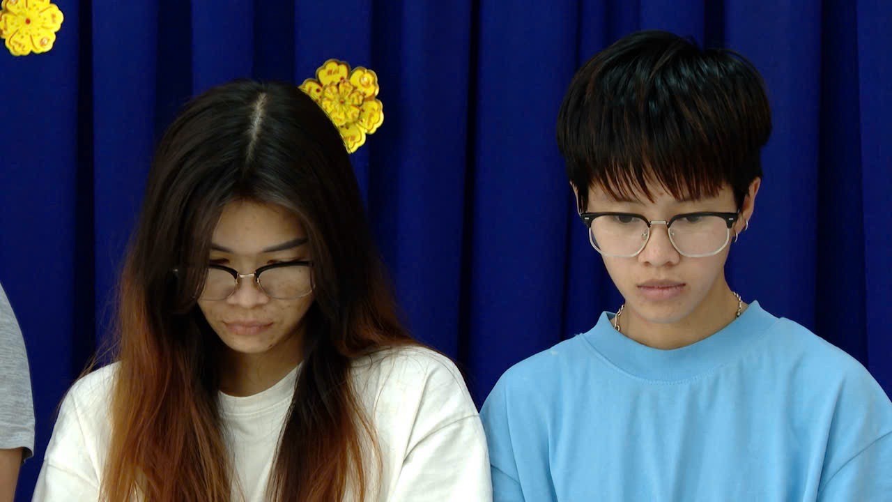 (từ trái sang): Nguyễn Thị Tuyết (áo trắng), Trần Thụy Đan Thanh (áo xanh).
