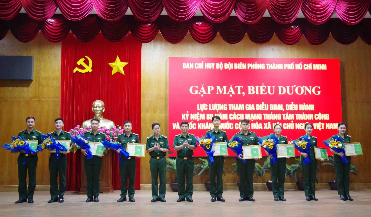 Tại buổi Gặp mặt, biểu dương Ban CHỉ huy Bộ đội Biên phòng Thành phố đã trao tặng giấy khen cho 12 Đồng chí đạt thành tích xuất sắc trong thực hiện nhiệm vụ A80.