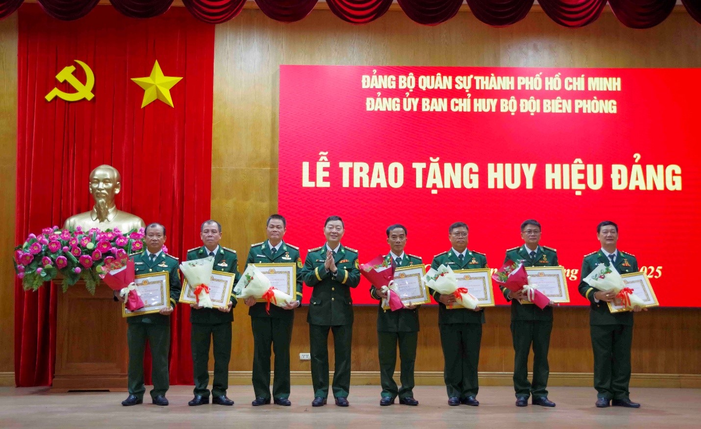 Tại buổi lễ, Đảng ủy, Ban Chỉ huy Bộ đội Biên phòng Thành phố đã công bố quyết định của Ban Thường vụ Thành ủy tặng Huy hiệu 30 năm tuổi Đảng đợt 07/11/2025  cho 08 đảng viên thuộc các chi, đảng bộ trực thuộc Đảng bộ, Ban Chỉ huy Bộ đội Biên phòng Thành phố, gồm các đồng chí Nguyễn Ngọc Quang. Chi bộ khối chiến đấu, Đảng bộ Phòng Tham mưu; đồng chí Đàm Văn Thuấn, Chi bộ phòng Hậu cần – Kỹ thuật; đồng Chí Đặng Quốc Hương, Chi bộ Trạm BPCK cảng Bến Nghé; đồng Chí Nguyễn Nam Trung Chi bộ BPCK cảng Nhơn Trạch; đồng chí Nguyễn Văn Thắng, Chi bộ Trạm BPCK cảng Hiệp Phước, Đảng bộ BPCK cảng Thành phố; đồng chí Trương Quang Hạnh; đồng chí Vũ Văn Hùng Chi bộ Đồn Biên phòng Phước Hải và đồng chí Nguyễn Xuân Thông Chi bộ Đồn Biên phòng Chí Linh.
