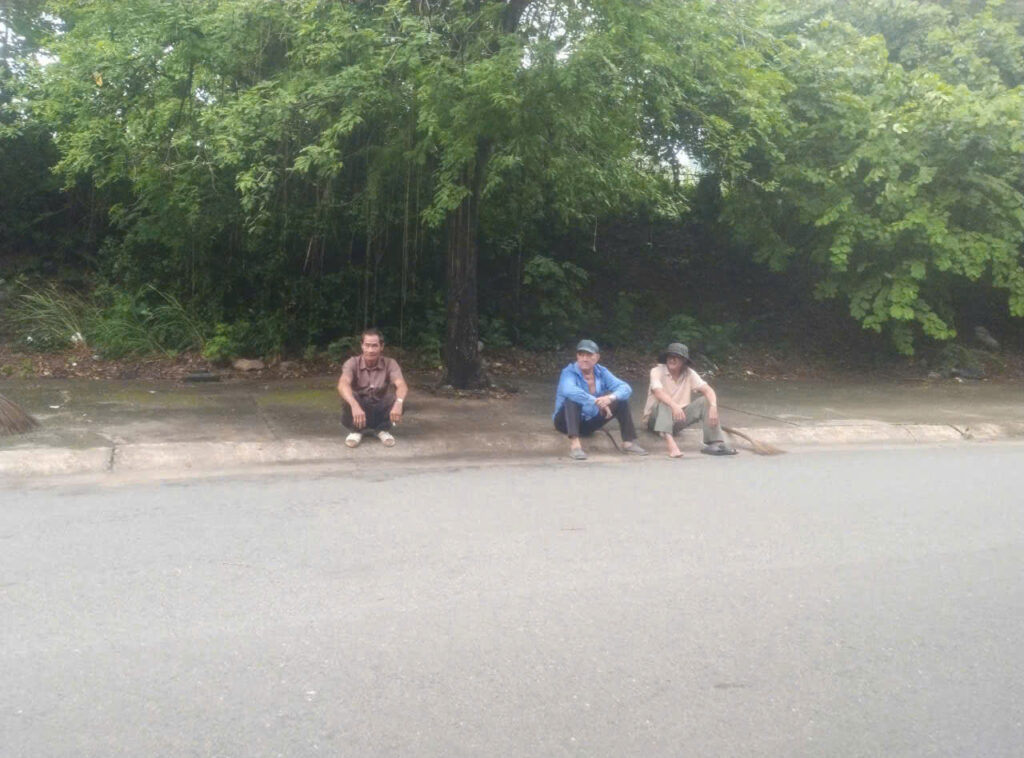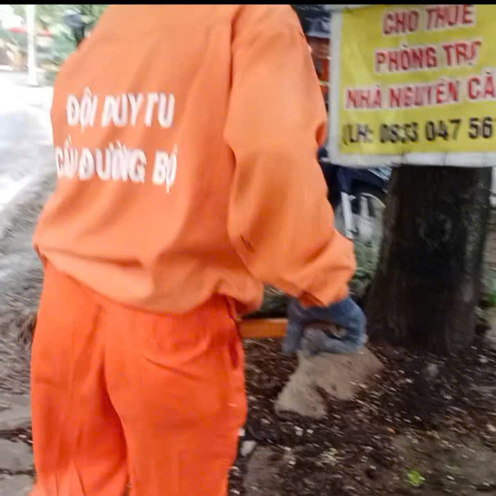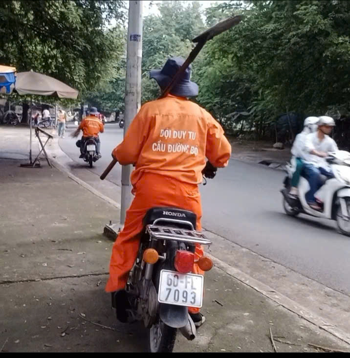 Cùng một cung đường  Võ Trường Toản, cứ vài ngày thì có  một nhóm người xuất hiện, mặc áo đồng phục màu cam sau lưng áo có chữ  “Đội duy tu cầu đường bộ”, những người mặc đồng phục màu cam này cũng cầm chổi “quét lòng lề đường”. Việc quét rác của những người áo cam này “ hoàn toàn ngược lại với câu khẩu hiệu “đường phố sạch đẹp”.